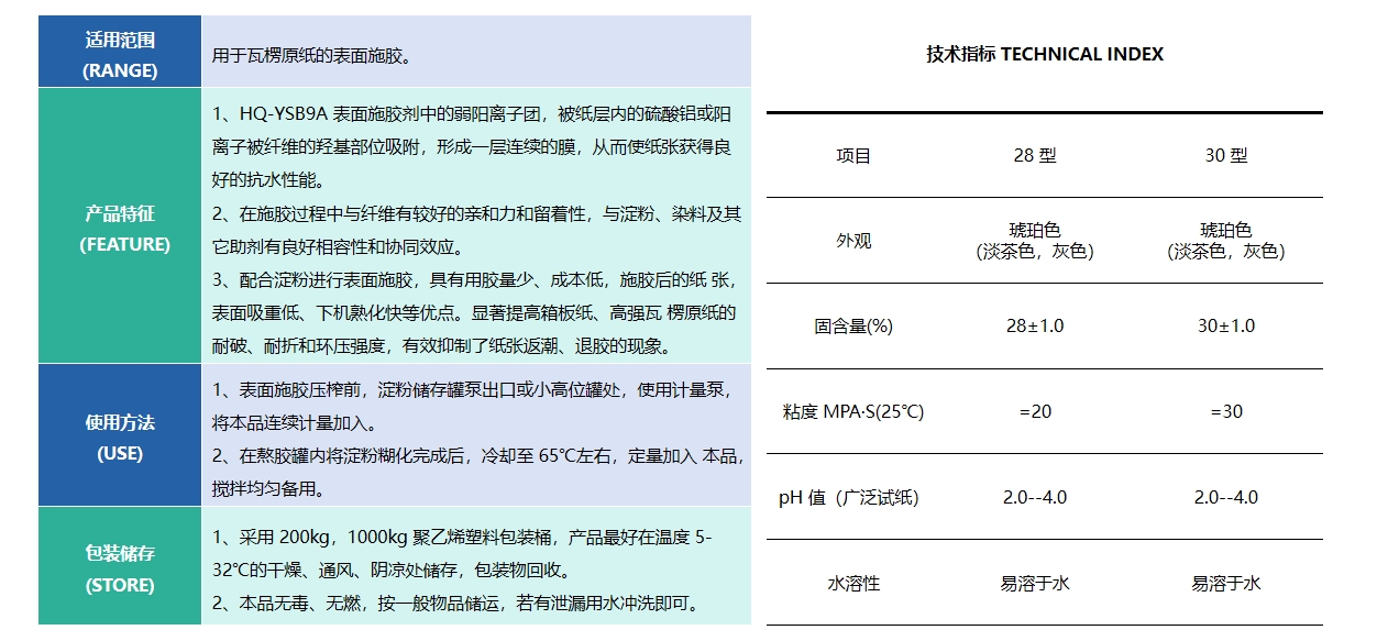 HQ-G6887 表面施膠劑,是苯乙烯-丙烯酸醋類的共聚合成的一種弱陽離子表面施膠劑,能與淀粉有機溶合,賦予淀粉涂層良好的交聯(lián)強度和疏水性能。無熟化期,可100%留著于紙上,集中發(fā)揮其施膠效果,獲得穩(wěn)定的抗水性能,且高強瓦楞紙不回潮,環(huán)壓強度穩(wěn)定不變。